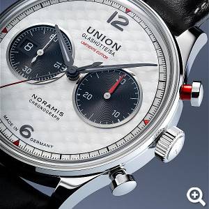 Der Noramis Chronograph ist inspiriert vom "Großen Werkmeister" - ein sportlicher Zweisitzer aus den 50er Jahren. Er greift die Farb- & Designsprache das klassischen Rennwagens auf und macht dieses Modell zu einem einzigartigen Meisterwerk.